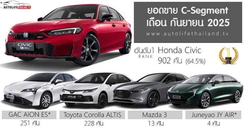 ข้อมูลย้อนหลัง : ยอดขาย C-Segment เดือน สิงหาคม 2025 รวม 1,331 คัน : https://autolifethailand.tv/sales-report-c-segment-august-2025/