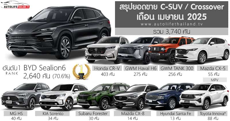 ยอดขาย รถยนต์ กลุ่ม C-SUV / Crossover เดือน เมษายน 2025