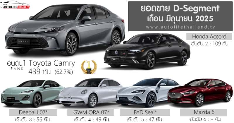 ยอดขาย รถยนต์ กลุ่ม D-Segment เดือน มิถุนายน 2025