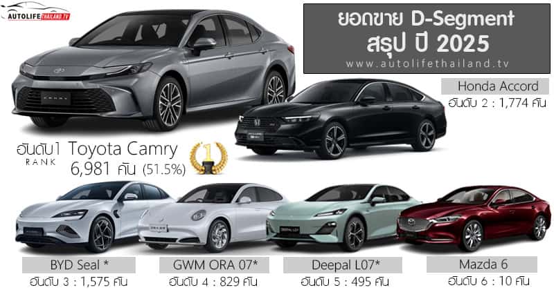 สรุป ปี 2025 ยอดขาย D-Segment รวม 11,664 คัน : Toyota Camry ครองแชมป์ ส่วนแบ่งตลาด 51.5%