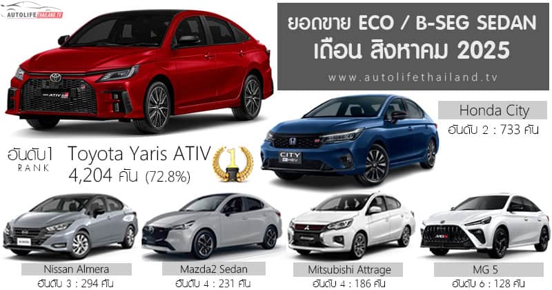 ยอดขาย ECO / B-Segment Sedan เดือน สิงหาคม 2568 รวม 5,776 คัน