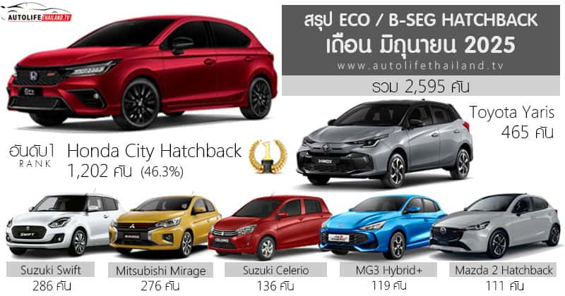 ยอดขาย รถยนต์ กลุ่ม ECO / B-Segment Hatchback เดือน มิถุนายน 2025