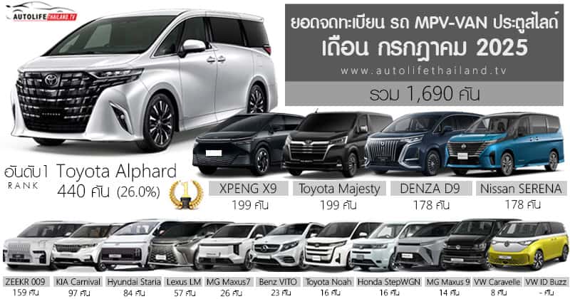 ยอดจดทะเบียน รถ MPV – VAN ประตูสไลด์ เดือน กรกฎาคม 2025 รวม 1,690 คัน | Toyota Alphard ครองแชมป์