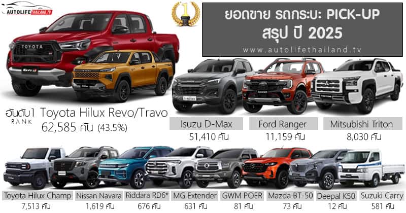 ข้อมูลที่เกี่ยวข้อง : ยอดขายรถกระบะ Pick-up เดือน ธันวาคม 68 รวม 14,960 คัน : Toyota Hilux Travo/Revo ครองแชมป์ : https://autolifethailand.tv/sales-report-pick-up-thailand-dec-2025/