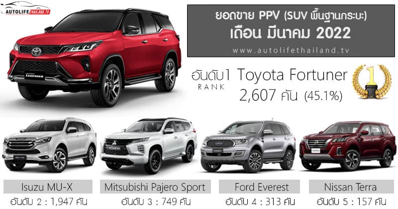 Sales Report ยอดขายรถยนต์ กลุ่ม PPV (SUV พื้นฐานกระบะ) เดือน มีนาคม 2022