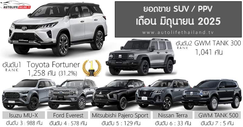 ยอดขาย รถยนต์ กลุ่ม SUV – PPV เดือน มิถุนายน 2025