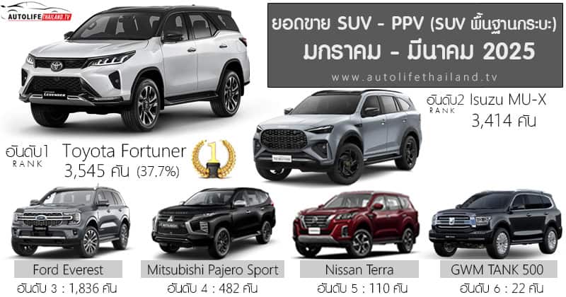 สรุปยอดขาย ไตรมาส1 ปี 2025 (ม.ค.-มี.ค.) กลุ่ม SUV – PPV : เดือน มกราคม – มีนาคม 2025