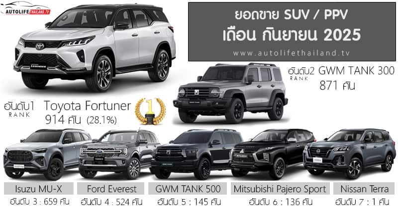 ยอดขาย รถยนต์ กลุ่ม SUV – PPV เดือน กันยายน 2025