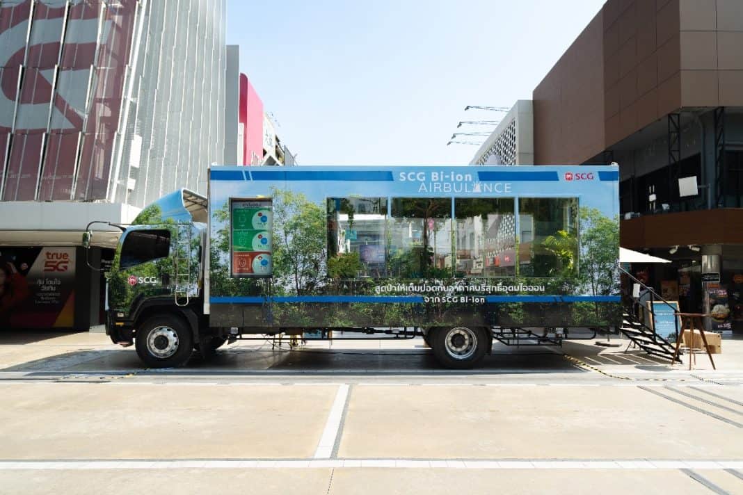 ระบบไอออนกำจัดเชื้อโรคในอากาศ “SCG Bi-ion” โดย เอสซีจี (SCG) สร้างสรรค์ รถกู้อากาศบริสุทธิ์เคลื่อนที่ SCG Bi-ion #AIRBULANCE เป็น Mobile Unit ที่ติดตั้ง “SCG Bi-ion” ระบบไอออนกำจัดเชื้อโรคในอากาศ ที่มีประสิทธิภาพในการกำจัดเชื้อแบคทีเรียและไวรัส รวมถึงฝุ่นละอองขนาดเล็ก เพื่อร่วมสร้างประสบการณ์พื้นที่อากาศสะอาดปลอดภัย ที่สามารถสูดลมหายใจได้เต็มปอด ภายใต้การจำลองบรรยากาศป่าตามธรรมชาติ พร้อมจอแสดงผลค่าความบริสุทธิ์ของอากาศภายในที่สะอาดปลอดภัยยิ่งกว่าเมื่อเทียบกับภายนอกรถ