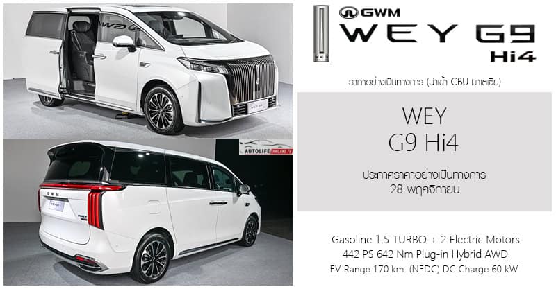 GWM WEY G9 Hi4 เวอร์ชั่นไทย MPV 7 ที่นั่ง ประตูสไลด์ Plug-in Hybrid เตรียมเปิดตัวอย่างเป็นทางการ และ ประกาศราคา 28 พฤศจิกายน นี้ นำเข้าทั้งคัน CBU จากมาเลเซีย รอลุ้นราคา !