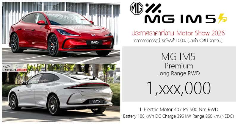 MG IM5 Premium Long Range RWD ประกาศราคาอย่างเป็นทางการที่งาน Motor Show 2026 วันที่ 23 มีนาคม 2569 นี้