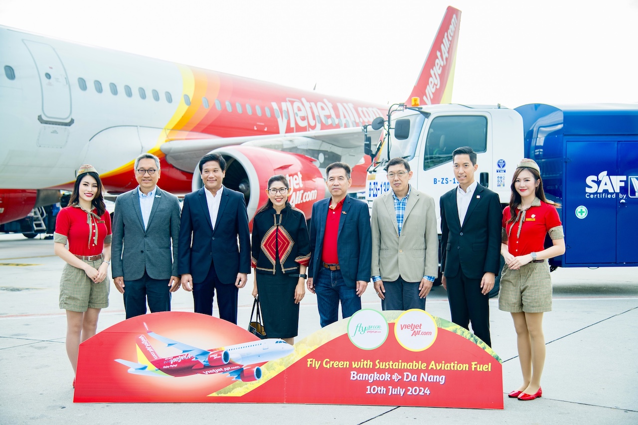 เวียตเจ็ทไทยแลนด์เปิดเที่ยวบินปฐมฤกษ์ กรุงเทพ-ดานัง เวียดนาม ซึ่งเป็นเที่ยวบินระหว่างประเทศเที่ยวบินแรกของไทยที่ใช้น้ำมันเชื้อเพลิงอากาศยานแบบยั่งยืน (SAF) ด้วยความร่วมมือระหว่างสายการบินฯ กับบริษัท ปตท.น้ำมันและการค้าปลีก จำกัด (มหาชน) (OR) พร้อมตั้งเป้าหมายใช้ SAF ปฏิบัติการบินร้อยละ 1 ภายในปี 2569 และร้อยละ 5 ภายในปี 2573 รวมทั้งสิ้น 20,000 ตัน ซึ่งจะลดปริมาณการปล่อยก๊าซคาร์บอนไดออกไซด์ได้ 153,000 ตัน ระหว่างปี 2568-2573