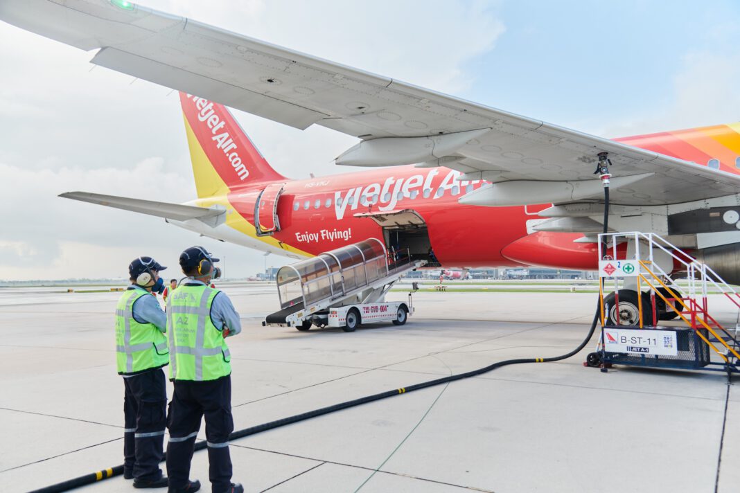 โดยในพิธีเปิดเที่ยวบินปฐมฤกษ์ เมื่อวันที่ 10 กรกฎาคม 2567 ที่ผ่านมา ได้รับเกียรติจาก นางสาวอุรวดี ศรีภิรมย์ เอกอัครราชทูต ณ กรุงฮานอย ประเทศเวียดนาม นายวุทธิชัย แก้วกระจ่าง ผู้อำนวยการศูนย์ปฏิบัติการวิเคราะห์มลพิษและสิ่งแวดล้อม กรมควบคุมมลพิษ กระทรวงทรัพยากรธรรมชาติและสิ่งแวดล้อม พร้อมผู้บริหารสายการบินฯ และพันธมิตร นำโดย นายวรเนติ หล้าพระบาง ประธานเจ้าหน้าที่บริหาร สายการบิน เวียตเจ็ทไทยแลนด์ นายดิษทัต ปันยารชุน ประธานเจ้าหน้าที่บริหาร บริษัท ปตท.น้ำมันและการค้าปลีก จำกัด (มหาชน) (OR) นายจักรภพ จรัสศรี ผู้อำนวยการฝ่ายสิ่งแวดล้อม บริษัท ท่าอากาศยานไทย จำกัด (มหาชน) (AOT) และ หม่อมหลวงณัฐสิทธิ์ ดิศกุล กรรมการผู้อำนวยการใหญ่ บริษัท บริการเชื้อเพลิงการบินกรุงเทพ จำกัด (มหาชน) (บาฟส์ : BAFS) ร่วมเป็นสักขีพยานในพิธี ณ สนามบินนานาชาติสุวรรณภูมิ