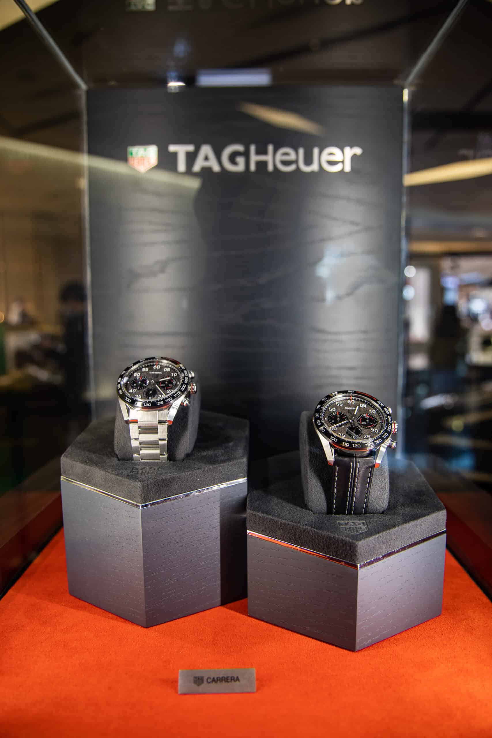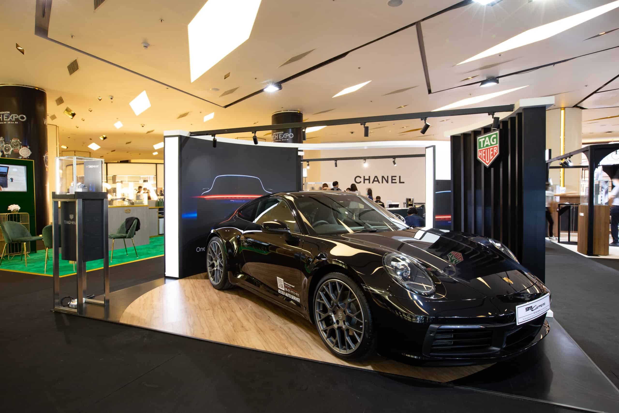 ภายในงาน Tag Heuer ได้จัดแสดงนาฬิการุ่นพิเศษอย่าง TAG Heuer Carrera Porsche Chronograph พร้อมนาฬิการุ่นเด่นอื่นๆ ในคอลเลคชัน TAG Heuer Carrera เคียงคู่กับรถสปอร์ตรุ่นเรือธงในตำนานเจเนอเรชั่นที่ 8 ของปอร์เช่ อย่าง 911 คาร์เรร่า (911 Carrera) รหัสตัวถัง 992 ที่มาพร้อมขุมพลังเครื่องยนต์ 6 สูบนอน เทอร์โบชาร์จ ให้พละกำลังสูงสุดกว่า 450 แรงม้า ในรูปลักษณ์แห่งเส้นสายงานออกแบบอันเต็มเปี่ยมไปด้วยความรถเป็นสปอร์ตสายพันธุ์แท้