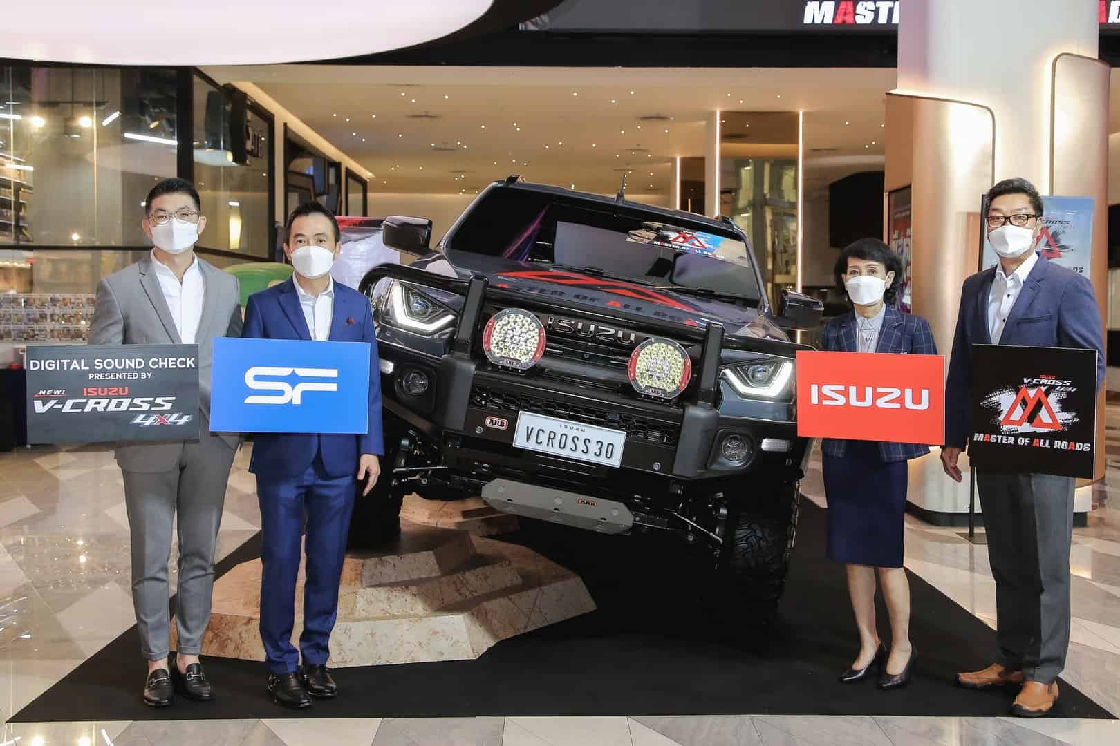 คุณปนัดดา เจณณวาสิน ประธานที่ปรึกษา และคุณวิชัย สินอนันต์พัฒน์ กรรมการ บริษัท ตรีเพชรอีซูซุเซลส์ จำกัด ร่วมกับคุณสุวัฒน์ ทองร่มโพธิ์ ประธานเจ้าหน้าที่บริหาร และคุณสุวิทย์ ทองร่มโพธิ์ ประธานเจ้าหน้าที่บริหาร สายงานการตลาด บริษัท เอส เอฟ คอร์ปอเรชั่น จำกัด (มหาชน) ร่วมเปิดตัวภาพยนตร์โฆษณา Digital Sound Check ชุดใหม่ล่าสุด THE SOUND OF “MASTER OF ALL ROADS” ที่ถ่ายทอดเสียงบรรยากาศจริงจากการถ่ายทำภาพยนตร์สั้น “ISUZU V-CROSS 4×4 MASTER OF ALL ROADS…ตัวจริงทุกเส้นทาง”