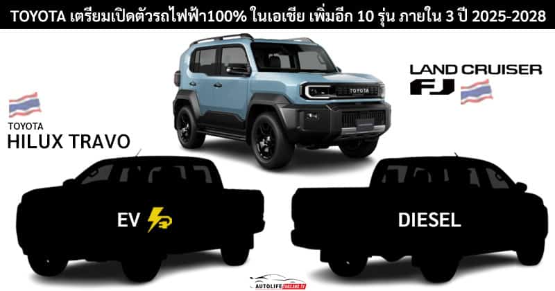 ทั้งนี้ โตโยต้าก็ยังคงพัฒนารถไฟฟ้า100% ควบคู่ไปพร้อมกัน โตโยต้ามีแผนเตรียมเปิดตัวรถไฟฟ้า100% ในเอเชีย เพิ่มให้ครบอีก 10 รุ่น ภายใน 3 ปี 2025-2028