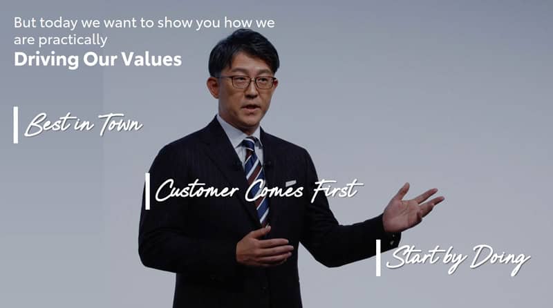 เราไม่สามารถสร้างความพึงพอใจให้กับลูกค้าได้ด้วยการเร่งเพิ่มจำนวนรถยนต์ทั้งหมดเพียงอย่างเดียว แต่ต้องมีความพร้อมทุกอย่างสำหรับลูกค้า ไม่ว่าจะเป็น โชว์รูม ศูนย์บริการ โรงงาน บริการหลังการขาย รวมถึง Supply Chain ที่จะเกิดขึ้นในแต่ละประเทศ พัฒนาพร้อมกันไปทุกอย่าง ไม่ใช่แค่การโชว์ยอดขายเท่านั้นคัน – เท่านี้คัน เพียงอย่างเดียว