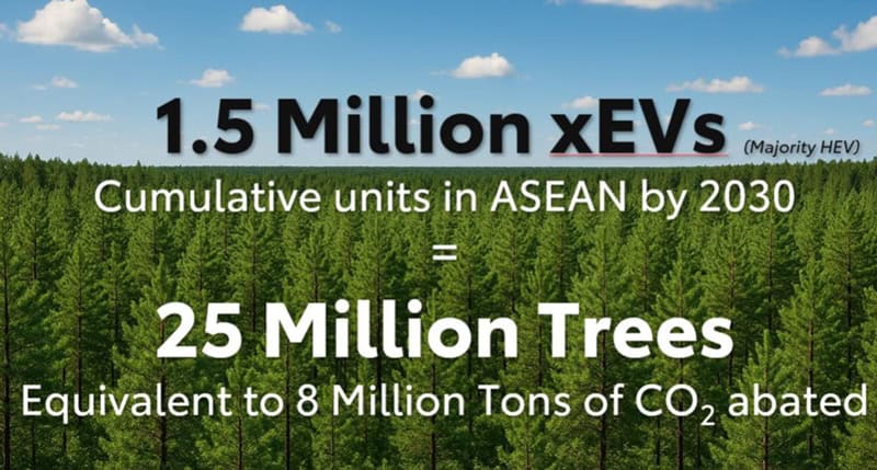 และ ประกาศนโยบาย 30 x 30 Mission ตั้งเป้ายอดขาย xEV 30% ในภูมิภาคอาเซียน ภายในปี 2030 ภายใต้กลยุทธ์ Multi-Pathway คาดว่ายอดขาย xEV สะสมในภูมิภาคจะทะลุ 1.5 ล้านคัน