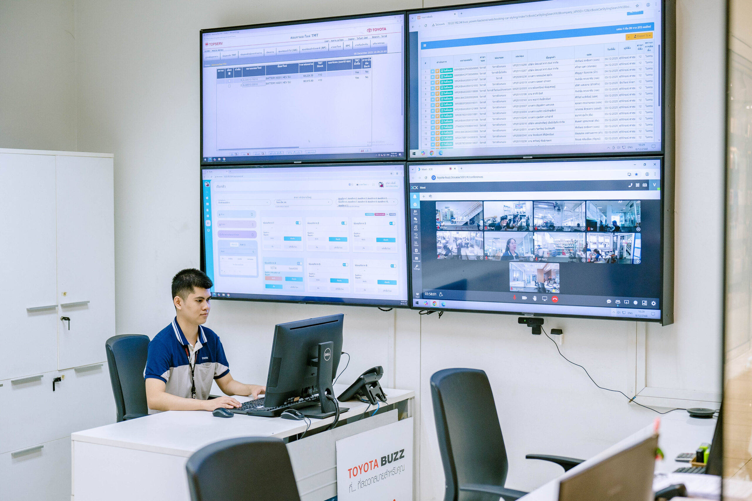 ขณะเดียวกัน ยังได้ทดลองระบบการสั่งอะไหล่จาก ศูนย์กระจายอะไหล่ ของโตโยต้า ที่แสดงให้เห็นถึงการเชื่อมโยงของระบบที่เป็นมาตรฐานเดียวกัน ซึ่งได้เห็นว่า อะไหล่บางอย่างที่หายากอย่าง แบตเตอรี่ หรือ ไฟหน้า ของ โตโยต้า พรีอุส ไฮบริด ที่มีอายุกว่า 10 ปีแล้วซึ่งอาจจะไม่ได้มีสต๊อกที่ดีลเลอร์แต่ในระบบโชว์ว่ามีสต๊อกอยู่ที่ศูนย์กระจายอะไหล่ซึ่งสามารถสั่งได้จริง