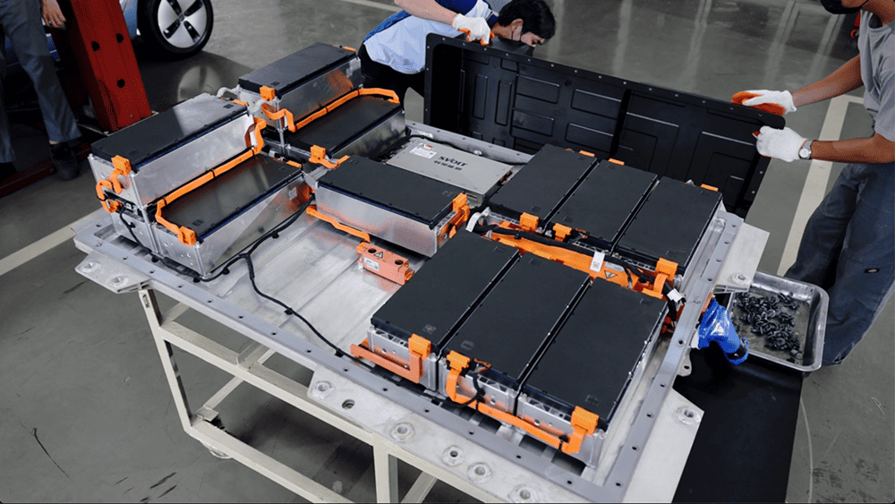 - แบตเตอรี่แรงดันสูง (High Voltage Battery): ตัวกักเก็บพลังงานไฟฟ้าทำหน้าที่เสมือนถังน้ำมันของเครื่องยนต์สันดาป ภายในแบตเตอรี่แรงดันสูงประกอบไปด้วยเซลล์แบตเตอรี่จำนวนหลายร้อยเซลล์มารวมเข้าด้วยกันเพื่อกักเก็บพลังงานไฟฟ้าในการขับเคลื่อน โดยรถยนต์พลังงานไฟฟ้าส่วนใหญ่จะเลือกใช้แบตเตอรี่ลิเธียมเป็นทางเลือกหลัก เพราะมีความสามารถในการคายประจุฉับพลัน และมีความจุที่มาพร้อมกับน้ำหนักที่เหมาะสม โดยรถยนต์ไฟฟ้าในปัจจุบันนิยมใช้เซลล์ประเภทลิเธียมนิกเกิลแมงกานีสโคบอลต์ออกไซด์ (NMC: Lithium Nickel Manganese Cobalt Oxide) ซึ่งเป็นแบตเตอรี่ที่ได้รับการพัฒนาต่อยอดขึ้นมาจาก LMO (Lithium Manganese Oxide) ให้กำลังสูง เก็บพลังงานได้มาก มีอายุการใช้งานได้ยาวนาน และเพิ่มรอบการอัดกับคายประจุได้เป็นอย่างดีจึงนิยมนำมาใช้ในรถยนต์ไฮบริดรวมถึงจักรยานไฟฟ้า