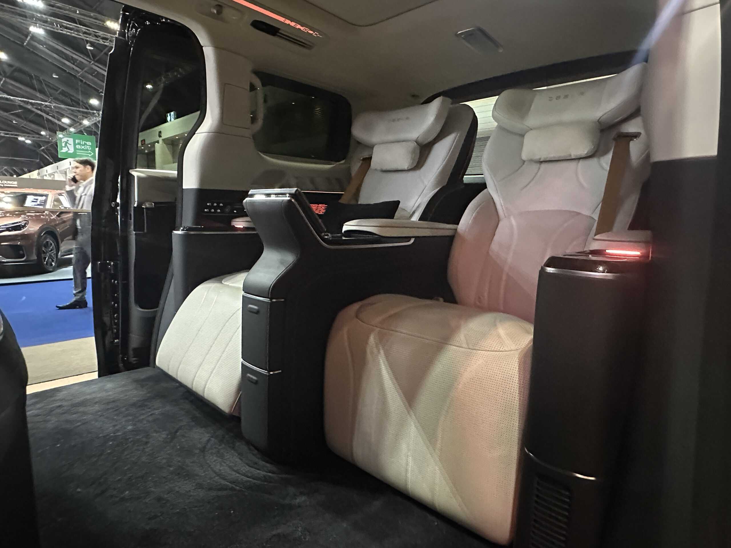 - ห้องโดยสาร: เน้นความสะดวกสบายระดับ Ultra-Luxury เบาะนั่งแถว 2 สามารถหมุนกลับ 360 องศา กลับมาหาเบาะที่นั้่งแถว 3 ได้