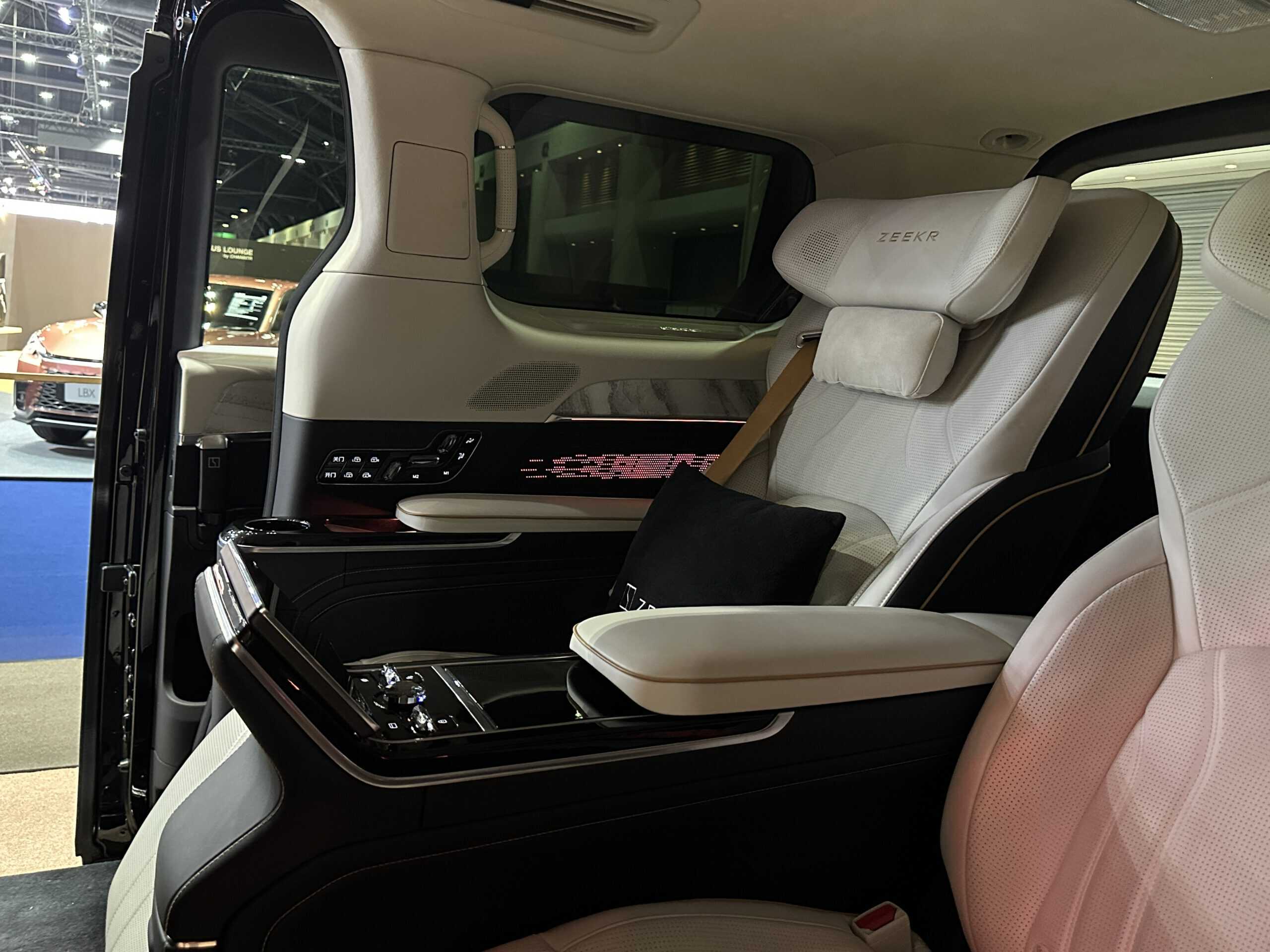โดย ZEEKR 009 Grand (เปิดรับจองสิทธิ์): เป็นรถในกลุ่ม อัลตราลักชูรีเอ็มพีวี 4 ที่นั่งแบบ VIP ห้องโดยสารระดับFirst Class ด้วยเบาะหนัง Nappa เกรดพรีเมียมปรับ 24 ทิศทาง พร้อมระบบนวด มอเตอร์คู่ 778 แรงม้า วิ่งไกล 702 กม./ชาร์จ (CLTC) เน้นเจาะกลุ่มผู้บริหารที่ต้องการความเป็นส่วนตัวระดับสูงสุด
